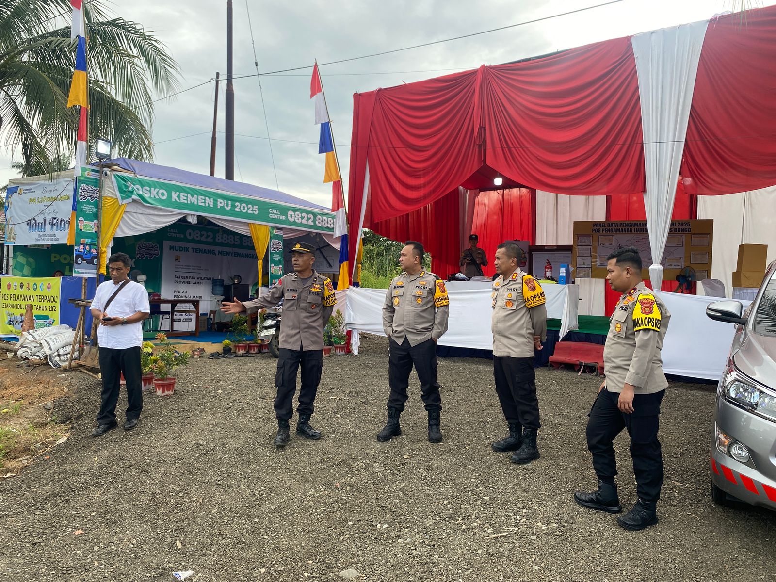 Selanjutnya, pada pukul 16.30 WIB, rombongan melanjutkan pengecekan Pospam Lebaran di Km 58, Desa Sirih Sekapur, Kecamatan Jujuhan. Pos ini menjadi titik strategis dalam pengamanan arus mudik dan arus balik Lebaran 2025.