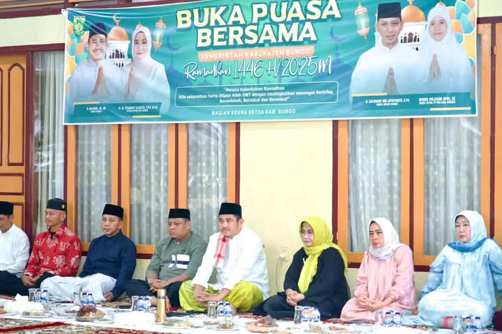 Dalam sambutannya, Bupati Bungo Mashuri menyampaikan rasa syukur atas kesempatan yang diberikan Allah SWT untuk berkumpul dan bersilaturahmi di bulan suci Ramadan.