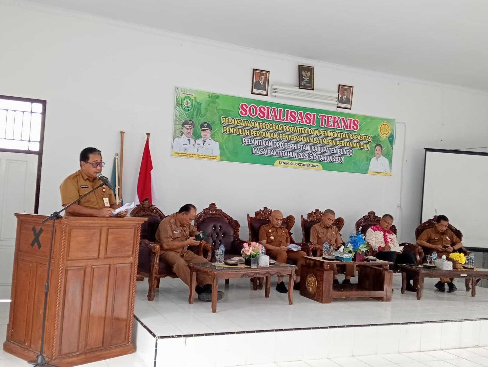 MUARA BUNGO – Dinas Tanaman Pangan, Hortikultura, dan Perkebunan (TPHBun) Kabupaten Bungo menggelar kegiatan sosialisasi teknis pelaksanaan Program Prowitra, peningkatan kapasitas penyuluh pertanian, sekaligus penyerahan alat mesin pertanian dan pelantikan DPD Perhiptani Kabupaten Bungo masa bhakti 2025, Senin (6/10/2025). Acara ini berlangsung di aula Dinas TPHBun Kabupaten Bungo.