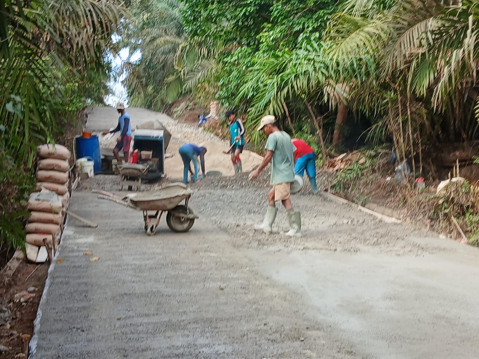 Saat ini, progres pembangunan jalan rabat beton tersebut sudah mendekati tahap akhir dan dalam waktu dekat akan bisa dilalui warga dengan nyaman.