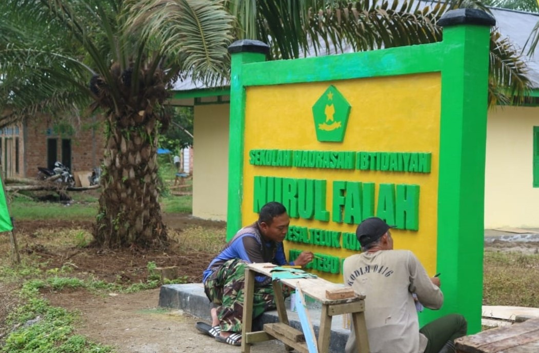 Salah satu upaya penyempurnaan tersebut adalah pengecatan papan nama Madrasah Ibtidaiyah Nurul Falah di Desa Teluk Kuali, Kecamatan Tebo Ulu, Kabupaten Tebo, Selasa (18/03/2025).