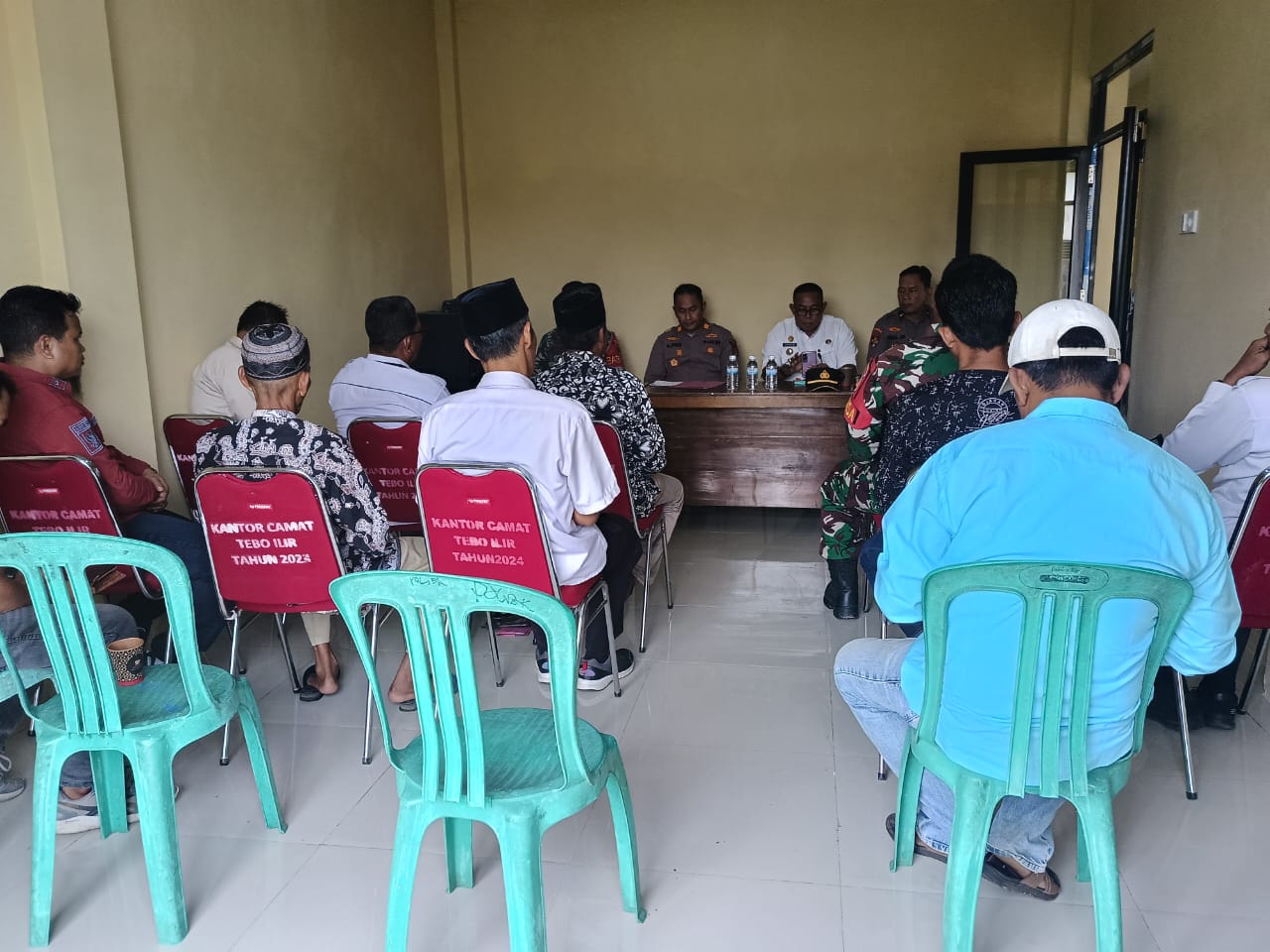 Sementara itu, Camat Tebo Ilir Yanto, S.Pd., M.M menyampaikan bahwa pertemuan ini merupakan bagian dari upaya Forkopimcam dalam menjaga stabilitas wilayah menjelang Pilkades.
