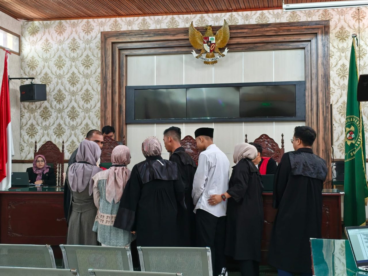 Sidang dipimpin oleh Hakim Ketua Justiar Ronald, SH, didampingi hakim anggota Muhammad Faisal dan Dyah Devina Maya.