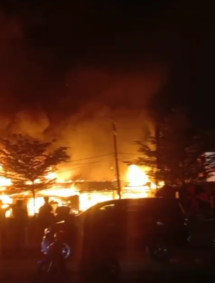 Akibat musibah ini menghanguskan Puluhan kios yang sebagian besar terbuat dari material papan, sehingga api dengan cepat membesar dan sulit dikendalikan.