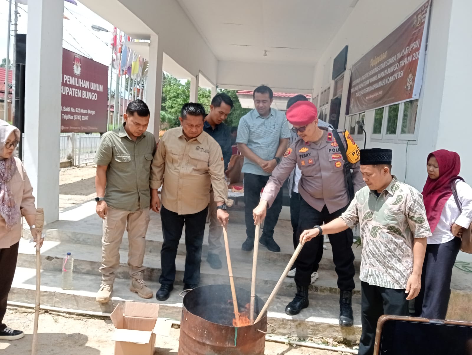 Pemusnahan ini berlangsung pada Jumat, (4/4/2025) di halaman kantor KPU Kabupaten Bungo dengan cara pembakaran surat suara oleh Ketua KPU, Bawaslu dan utusan polres.