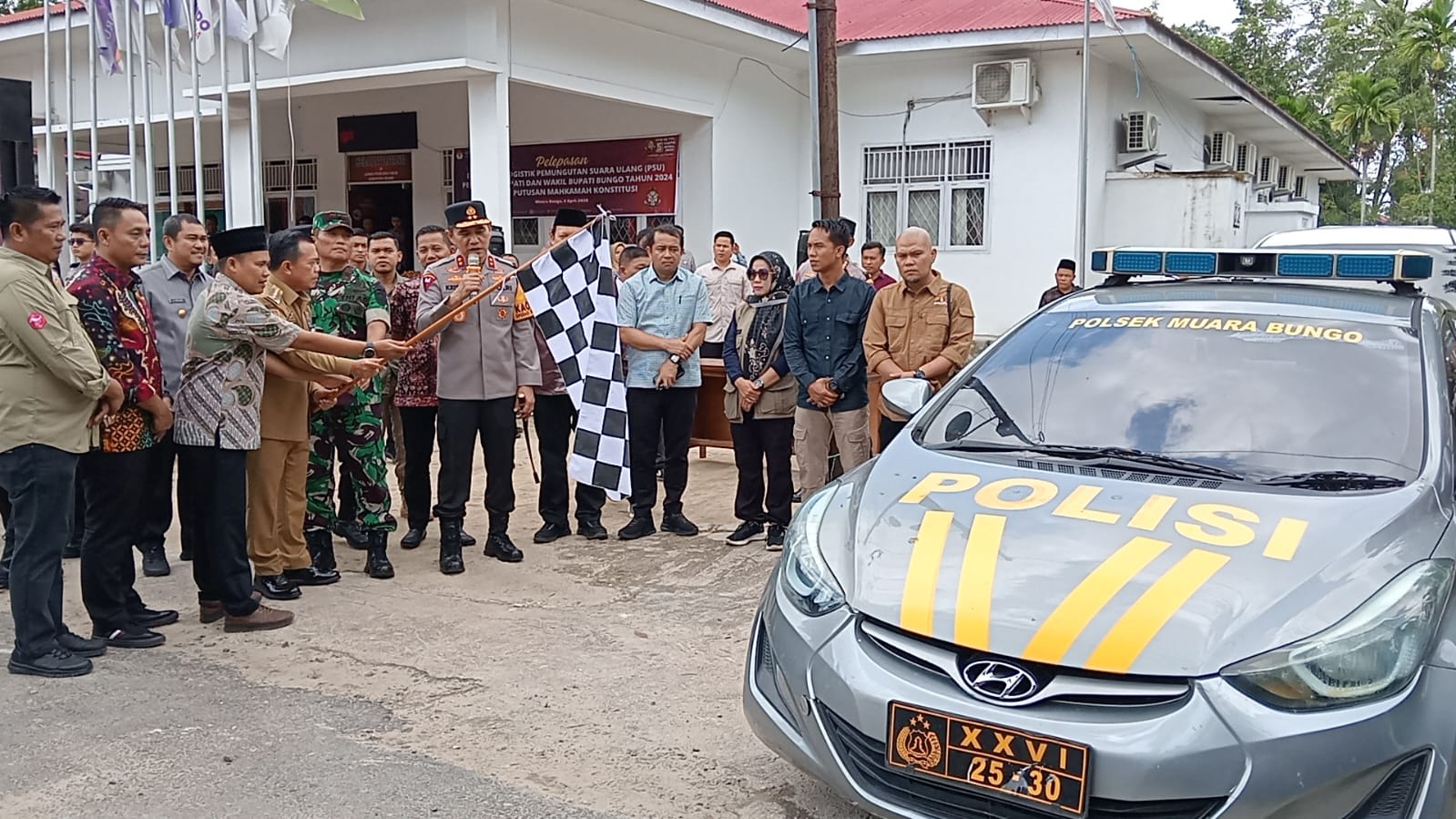 Ketua KPU Bungo, Armidis, secara langsung memimpin pelepasan logistik tersebut bersama sejumlah pejabat tinggi daerah dan provinsi. Hadir dalam kegiatan tersebut Kapolda Jambi Irjen Pol Krisno H. Siregar, Gubernur Jambi H. Al Haris, Danrem 042/Gapu Brigjen TNI Heri Purwanto, serta Bupati Bungo H. Mashuri.