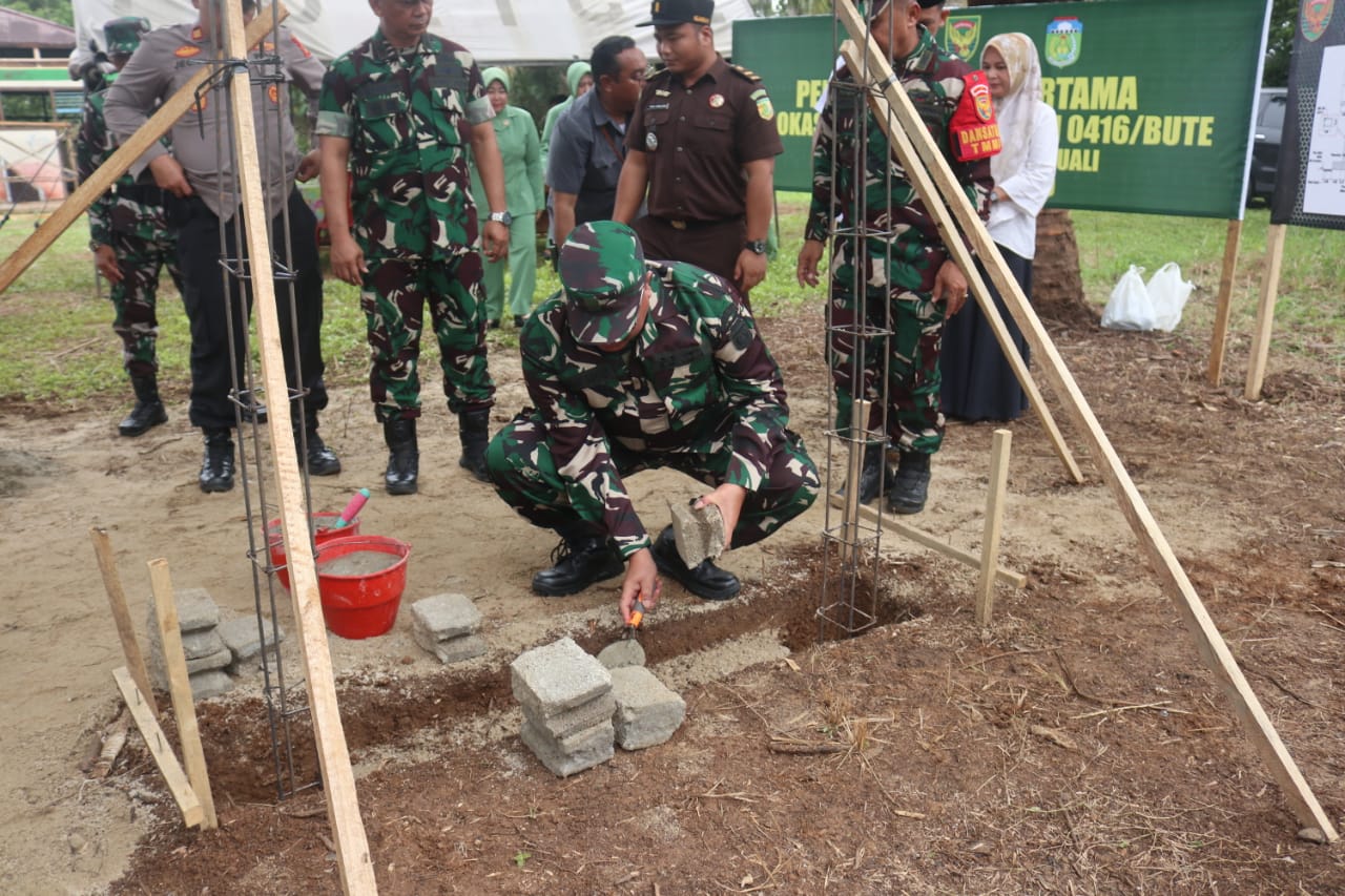 MUARA TEBO– Usai Upacara Pembukaan TNI Manunggal Membangun Desa (TMMD) Ke-123 Tahun Anggaran 2025 Kodim 0416/Bute, Sekretaris Daerah (Sekda) Tebo, Drs. Teguh Arhadi, M.M., melanjutkan rangkaian kegiatan dengan mengunjungi setiap titik lokasi sasaran fisik pembangunan. Puncak kegiatan ditandai dengan peletakan batu pertama pembangunan Tugu TMMD di Desa Teluk Kuali, Kecamatan Tebo Ulu, Kabupaten Tebo.