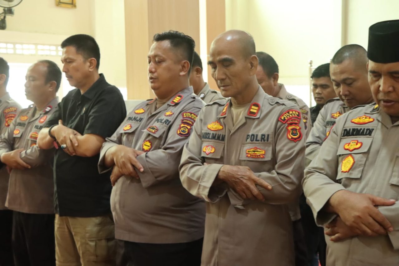 Kegiatan ibadah dipimpin oleh imam masjid Polres Bungo dan diikuti seluruh pejabat utama, personel, serta ASN Polres Bungo. Suasana haru tampak menyelimuti jamaah yang khusyuk mendoakan para korban yang meninggal dunia, sekaligus memohon keselamatan bagi warga yang masih terdampak.