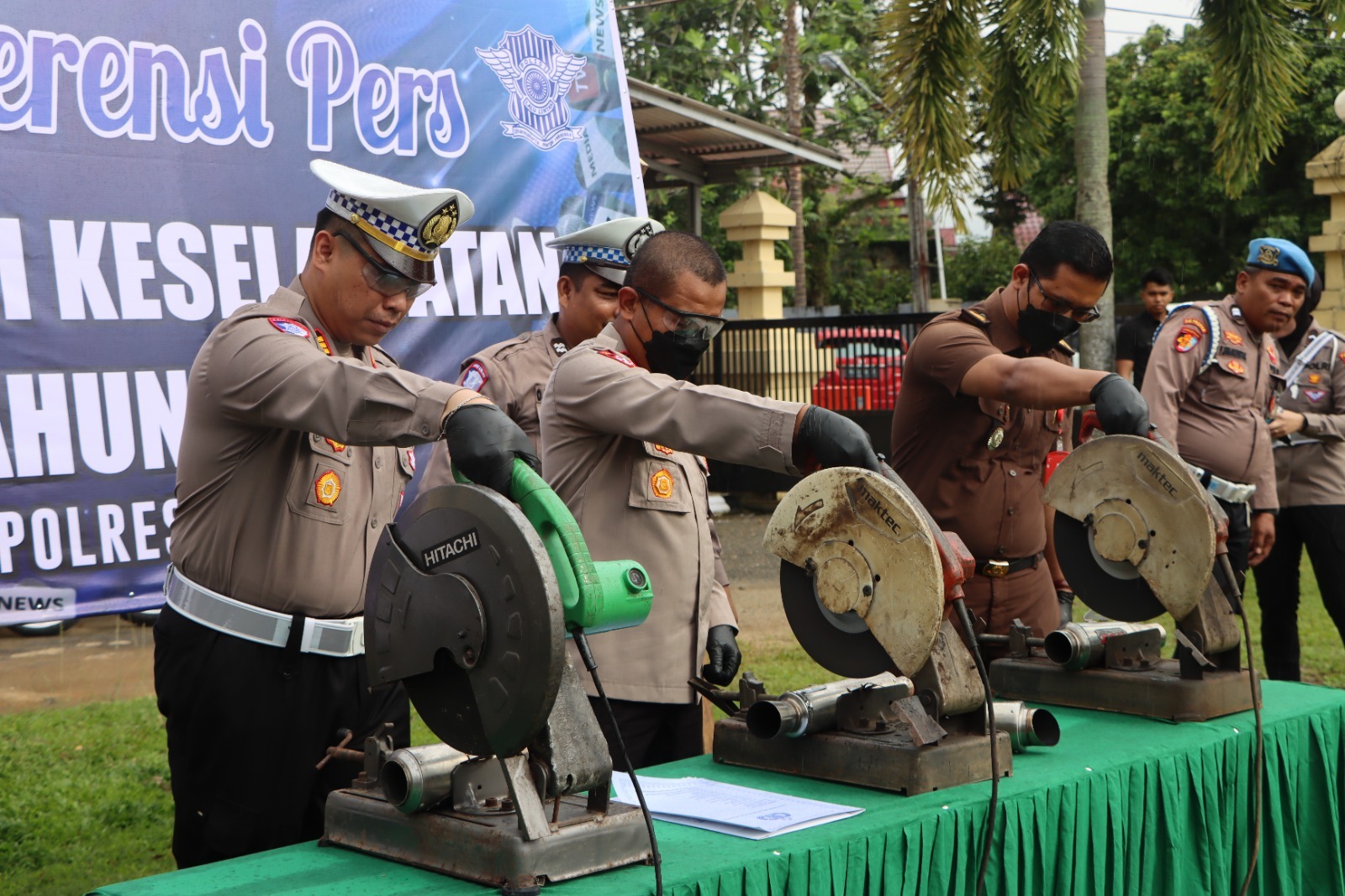 Pemusnahan dilakukan dengan cara memotong knalpot menggunakan mesin pemotong sebagai simbol ketegasan Polres Bungo dalam memberantas pelanggaran ini.