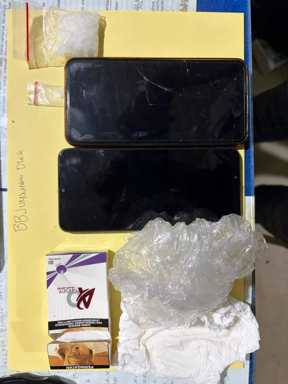 Selain itu, petugas juga mengamankan satu unit telepon genggam merek Vivo V15 warna biru. Total berat bruto narkotika jenis sabu yang berhasil diamankan mencapai 9,94 gram.