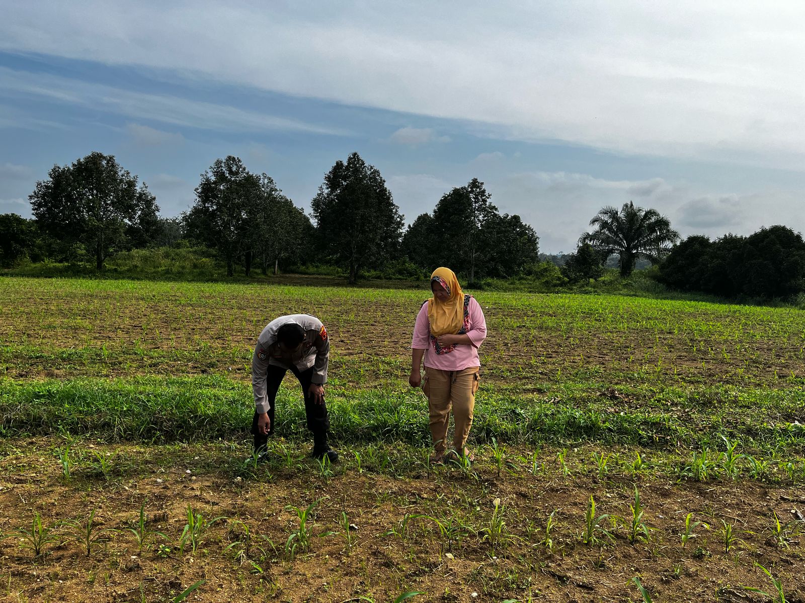 Kapolsek Kota Muara Bungo, AKP Adha Fristanto, yang diwakili oleh Kanit Binmas Polsek Muara Bungo, memimpin pengecekan perkembangan tanaman jagung yang mulai tumbuh di lahan tersebut. Dalam kesempatan itu, Kapolsek AKP Adha Fristanto menyampaikan bahwa kegiatan ini merupakan bagian dari upaya Polsek Muara Bungo dalam mendukung ketahanan pangan di wilayahnya.