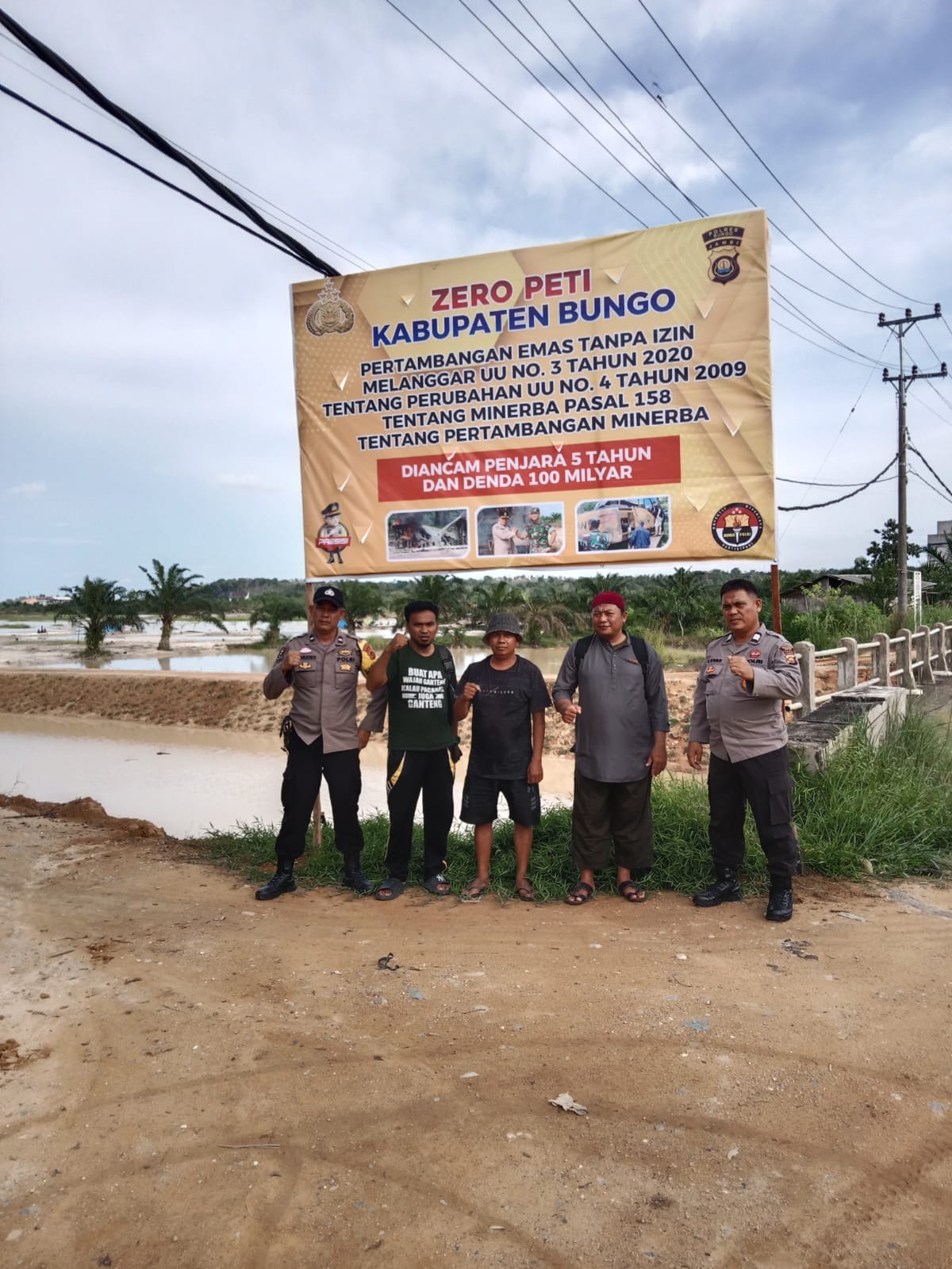 Dalam kegiatan tersebut, tampak hadir Kanit Patroli dan Bhabinkamtibmas (BKTM) Polsek Kota Muara Bungo yang didampingi oleh beberapa tokoh masyarakat. Mereka bersama-sama memasang spanduk yang berisi imbauan untuk tidak melakukan aktivitas PETI demi menjaga kelestarian lingkungan.
