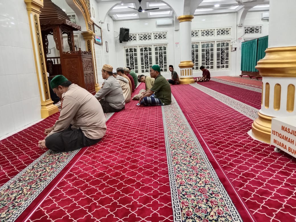 Dalam kegiatan tersebut, tampak hadir Aiptu Husnul Yaqien dan Aiptu Resmawan Sitorus sebagai perwakilan personel Polsek Muara Bungo yang mengikuti ibadah bersama jamaah masjid.