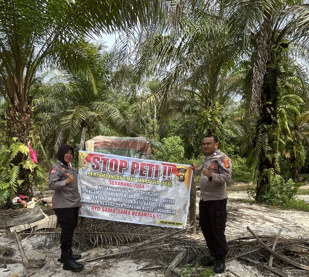 Muara Bungo— Polsek Kota Muara Bungo kembali menggelar kegiatan sosialisasi dan himbauan kepada masyarakat terkait larangan melakukan aktivitas Penambangan Emas Tanpa Izin (PETI).