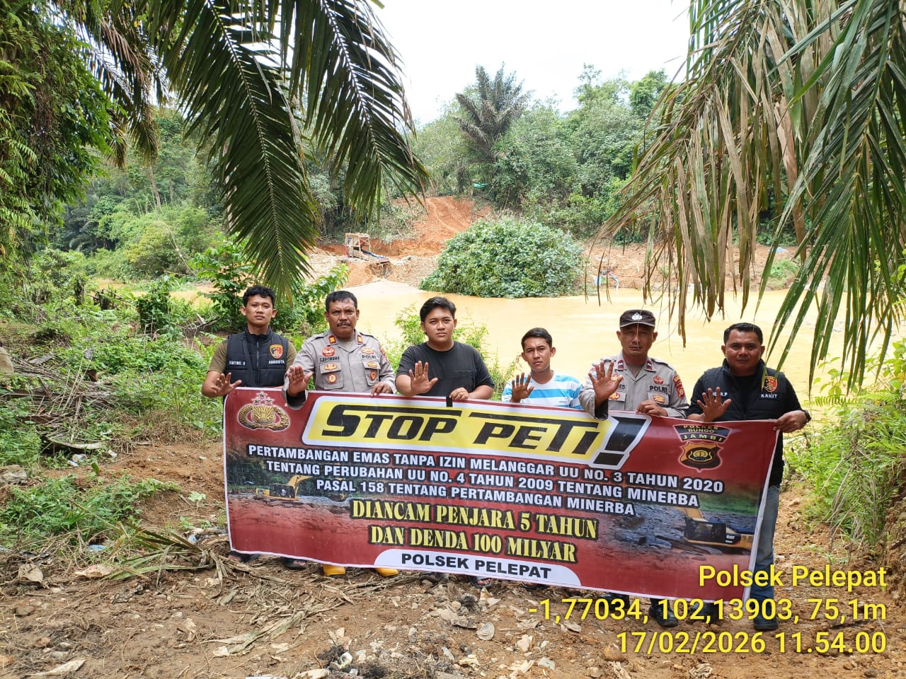 Dalam arahannya, Kapolsek Pelepat menegaskan bahwa aktivitas PETI merupakan perbuatan melanggar hukum dan dapat dikenakan sanksi pidana sebagaimana diatur dalam Undang-Undang Nomor 3 Tahun 2020 tentang Perubahan atas Undang-Undang Nomor 4 Tahun 2009 tentang Pertambangan Mineral dan Batubara, khususnya Pasal 158. Dalam ketentuan tersebut disebutkan bahwa setiap orang yang melakukan usaha penambangan tanpa izin resmi dapat dipidana dengan ancaman hukuman penjara paling lama lima tahun dan denda paling banyak Rp100 miliar.