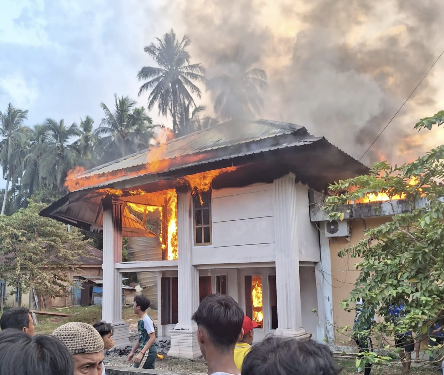“Kami sedang menonton pertandingan bola, tiba-tiba ada yang memberi tahu bahwa ada kebakaran rumah di RT 04. Saat ke lokasi, api sudah membesar. Kami langsung menghubungi Pos Damkar Jujuhan, dan tidak lama kemudian dua unit mobil damkar datang. Api bisa dipadamkan walau seluruh isi rumah ludes. Beruntung tidak ada korban jiwa,” ujarnya.
