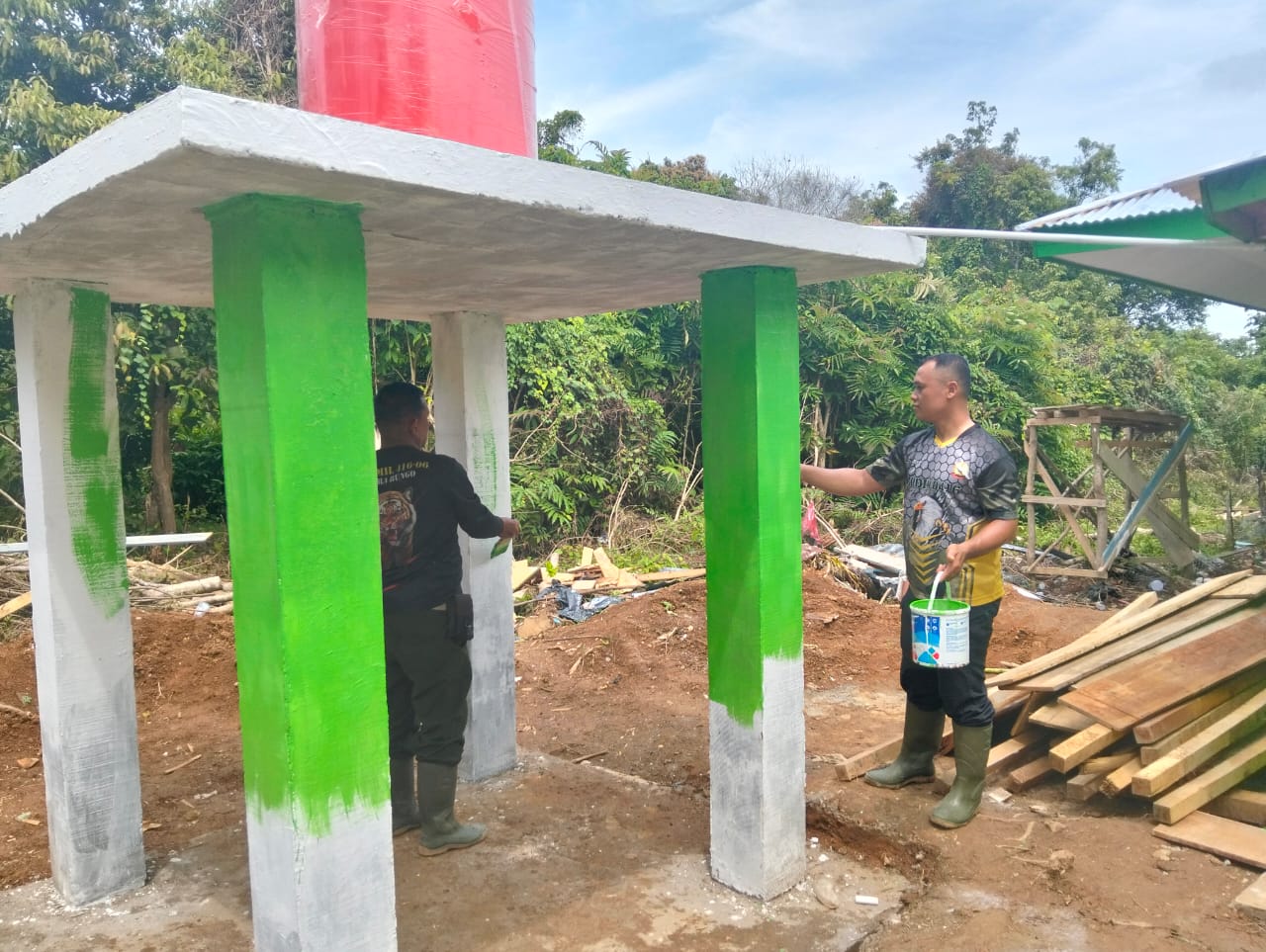 > *“Kami ingin memastikan bahwa tower air ini tidak hanya fungsional, tetapi juga memiliki tampilan yang baik. Warna hijau yang kami pilih adalah warna ciri khas TNI AD, sekaligus memberikan kesan yang segar dan ramah lingkungan,”* ujarnya, Minggu (09/03/2025).