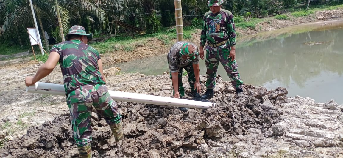 MUARA TEBO  – Satgas TNI Manunggal Membangun Desa (TMMD) Ke-123 Kodim 0416/Bute mulai melakukan pemasangan pipa untuk kolam ikan di Desa Teluk Kuali, Kecamatan Tebo Ulu, Kabupaten Tebo, Senin (10/03/2025). Pemasangan pipa ini bertujuan untuk memastikan ketersediaan air yang memadai bagi kolam ikan sebagai bagian dari program ketahanan pangan terpadu.