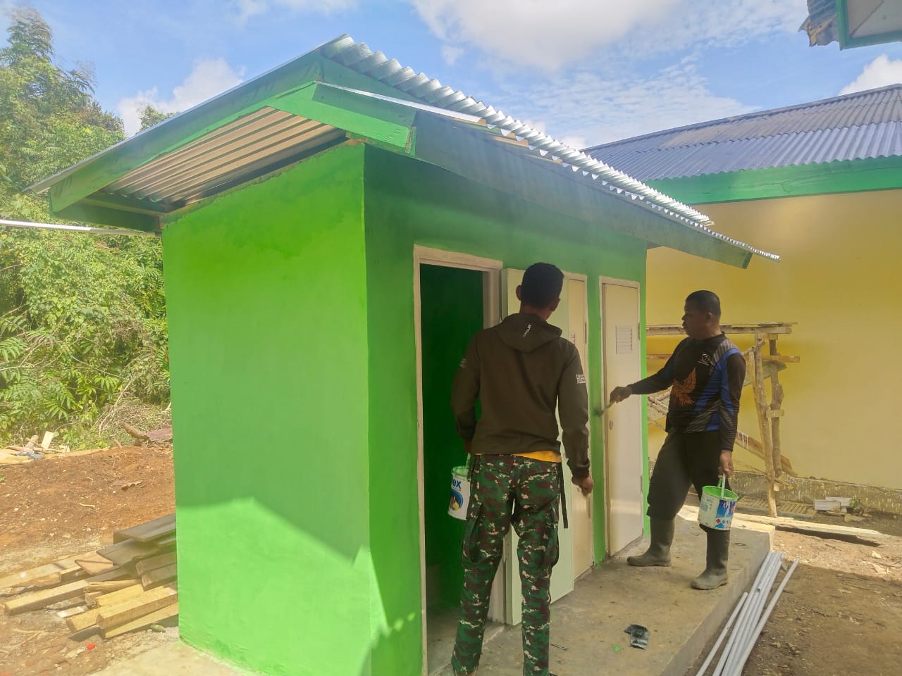 MUARA TEBO– Dalam upaya menciptakan lingkungan belajar yang bersih, sehat, dan nyaman, Satuan Tugas (Satgas) TNI Manunggal Membangun Desa (TMMD) Ke-123 Kodim 0416/Bungo Tebo (Bute) melaksanakan pengecatan fasilitas Mandi, Cuci, Kakus (MCK) di Madrasah Ibtidaiyah Nurul Falah, Desa Teluk Kuali, Kecamatan Tebo Ulu, Kabupaten Tebo, Selasa (11/3/2025).