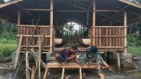 Warga Desa Malako Intan Bersama TNI Gotong Royong Bangun Rumah Tidak Layak Huni