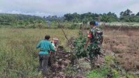 Satgas TMMD Ke-123 dan Warga Desa Teluk Kuali Buka Lahan Ketahanan Pangan Terpadu