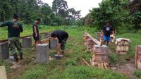Satgas TMMD Ke-123 Bersama Warga Bangun Kandang Kambing di Desa Teluk Kuali