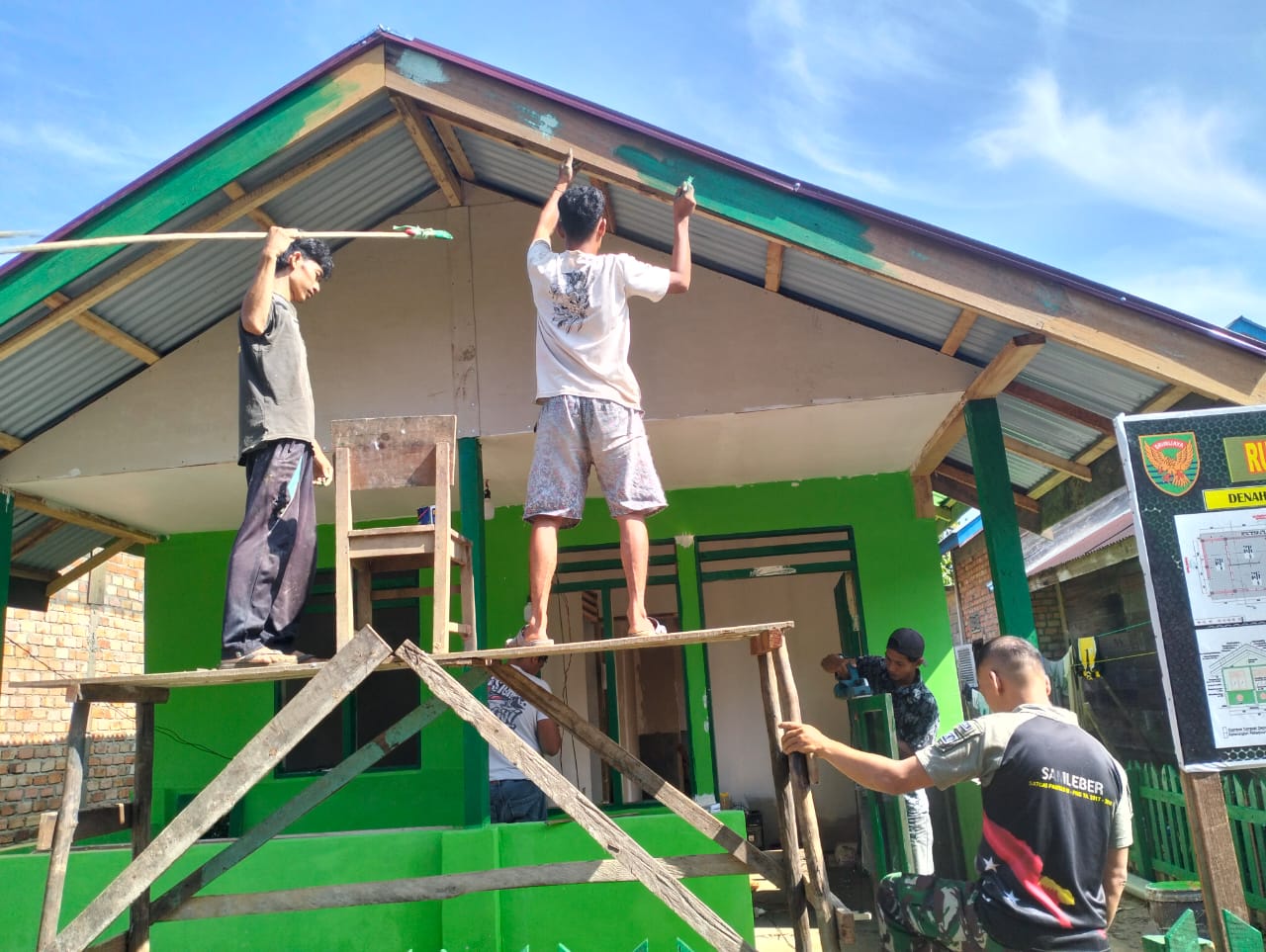 Dalam kegiatan ini, warga secara sukarela membantu berbagai pekerjaan, seperti pemasangan seng lisplang dan pengecatan teras rumah. Salah satu warga, Saleh, mengungkapkan rasa antusiasnya saat terlibat dalam kegiatan tersebut.